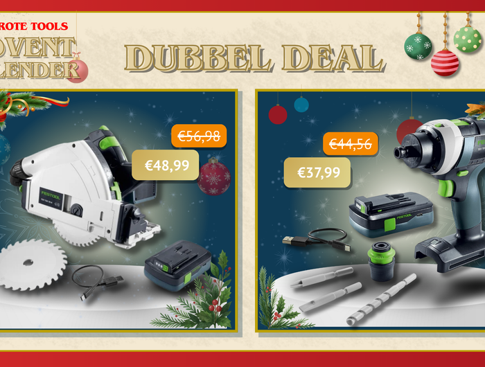Vandaag hebben we twee leuke deals voor onder de kerstboom. De Festool Speelgoed Accu-Zaagset is nog op tijd binnen voor de feestdagen en tijdelijk afgeprijsd van €56,98 naar €48,99. Daarnaast scoor je de Festool Speelgoed Accuschroefmachine voor €37,99 in plaats van €44,56. Perfecte cadeaus om december net wat leuker te maken.