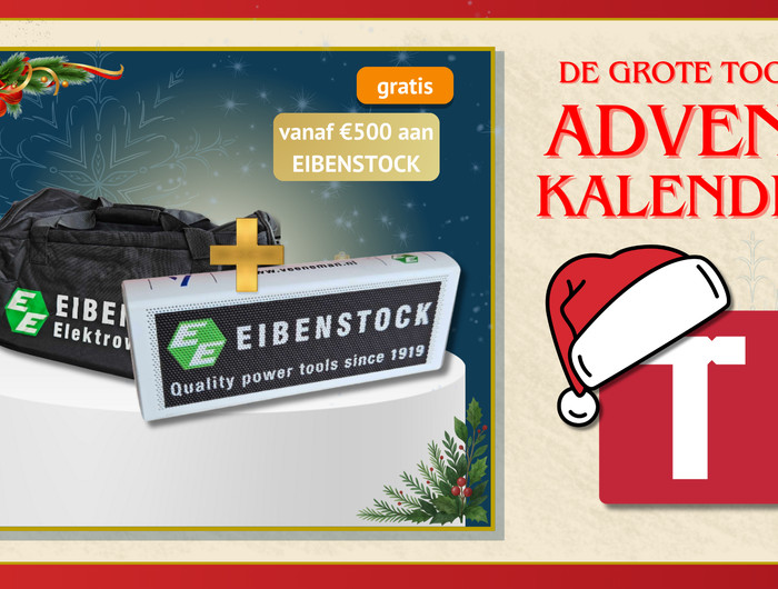 Op dag 3 van de Toolsvoordelig Adventkalender staat Eibenstock in de kijker. Bij een bestelling van €500 aan Eibenstock producten ontvang je een gratis Eibenstock sporttas en bluetooth speaker. Een mooie combinatie van kwaliteit en extra’s, perfect om je decemberdeal net dat beetje meer te geven.