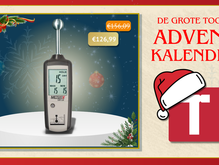 Op dag 4 van de Toolsvoordelig Adventkalender zetten we de VM128 Vochtmeter (545709) in de spotlight. Een handige en nauwkeurige meter voor hout, bouwmaterialen en huisrenovaties. Normaal geprijsd op €156,09, maar vandaag beschikbaar voor €126,99. Een mooie decemberdeal voor wie graag voorbereid aan elke klus begint.