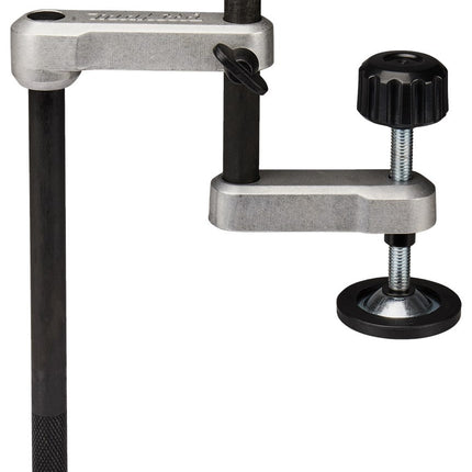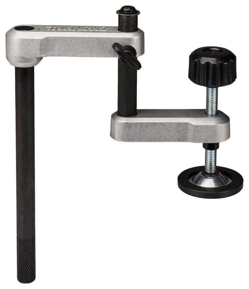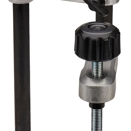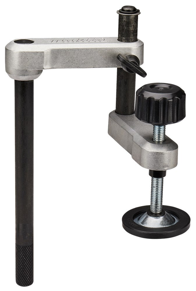 De verticale materiaalklem is geschikt voor afkortzagen. Met deze klem kun je het te zagen materiaal vanaf de bovenzijde op de tafel van de afkortzaag vastklemmen.