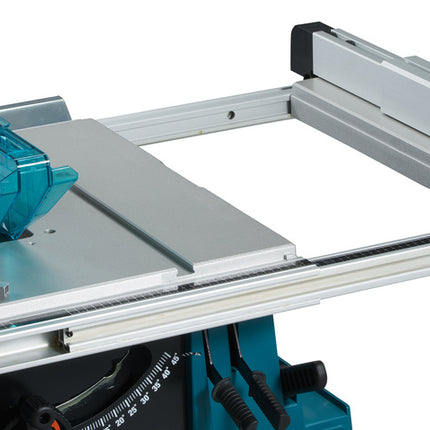 Groot bereik door tafelverbreders aan rechterzijkant en achterkant.Gemakkelijk te bedienen en zeer nauwkeurig in te stellen langsgeleider.Afkortgeleider met hoekverstelling.Nulspanningsbeveiliging beschermt gebruiker tegen ongewild starten.Langsgeleide...