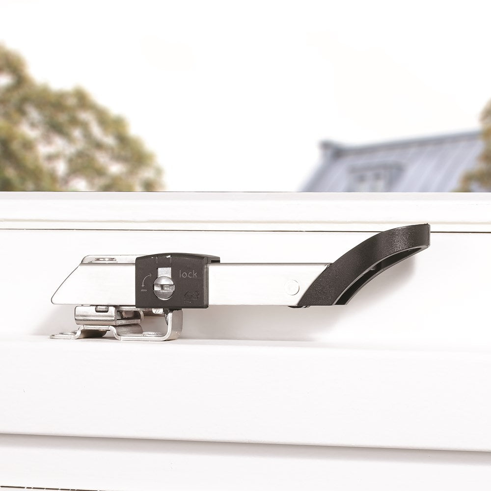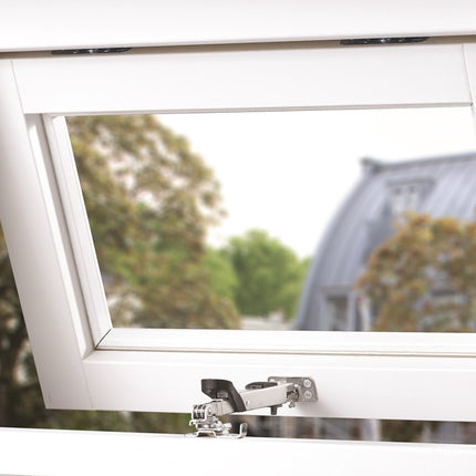 Traploos instelbare raamuitzetter met 3 preferente standen. Geschikt voor klep-, uitzet- en dakramen tot 1000 mm breed. Draairichting: wegdraaibaar naar rechts. Afsluitbare veiligheids combi-uitzetter AXAflex Security voor traploos instelbare ventilatie.
