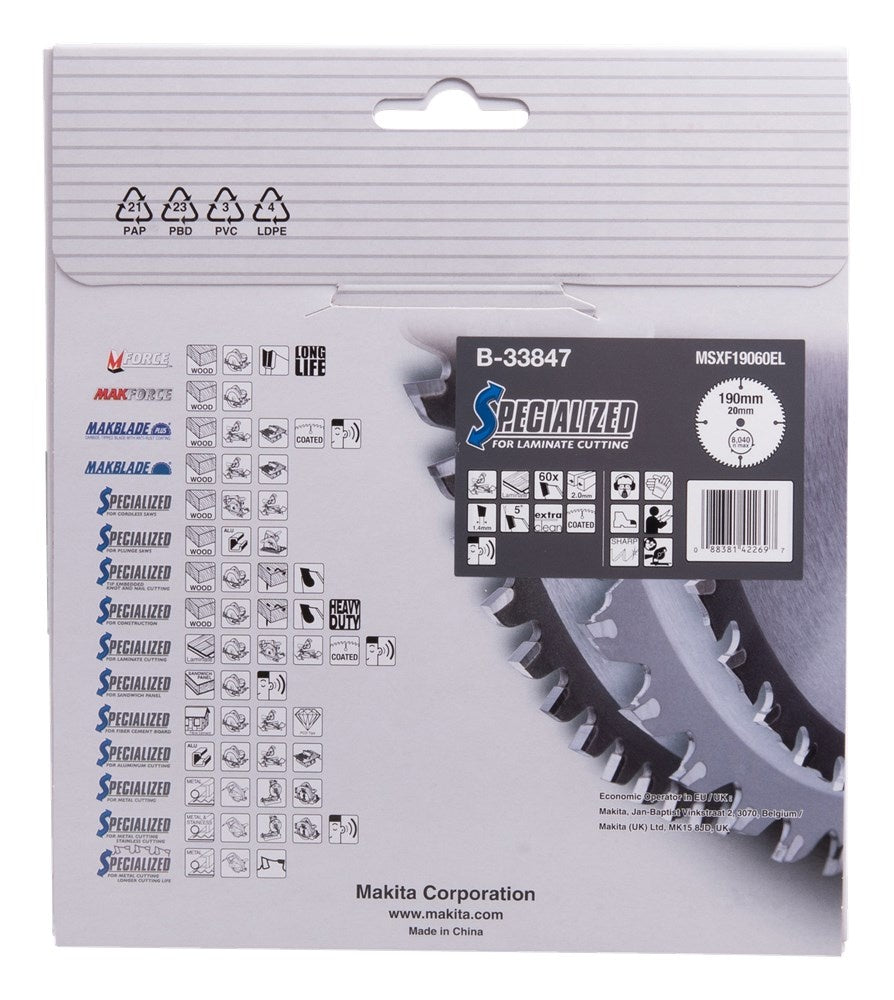 Makita Zaagblad Gemelamineerd 190X20X2mm 60T 5G