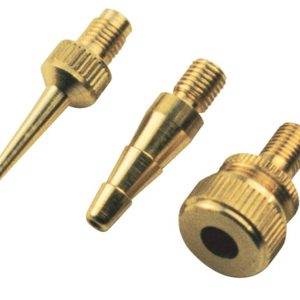 Set bestaande uit 1 naald voor bal, 1 naald voor rubber boot of dergelijk en 1 naald voor fietsband. Technische specificaties product code 200261, gewicht 45 g, aantal (delen, bestaande uit) 3-delig, buitendraad 3 mm