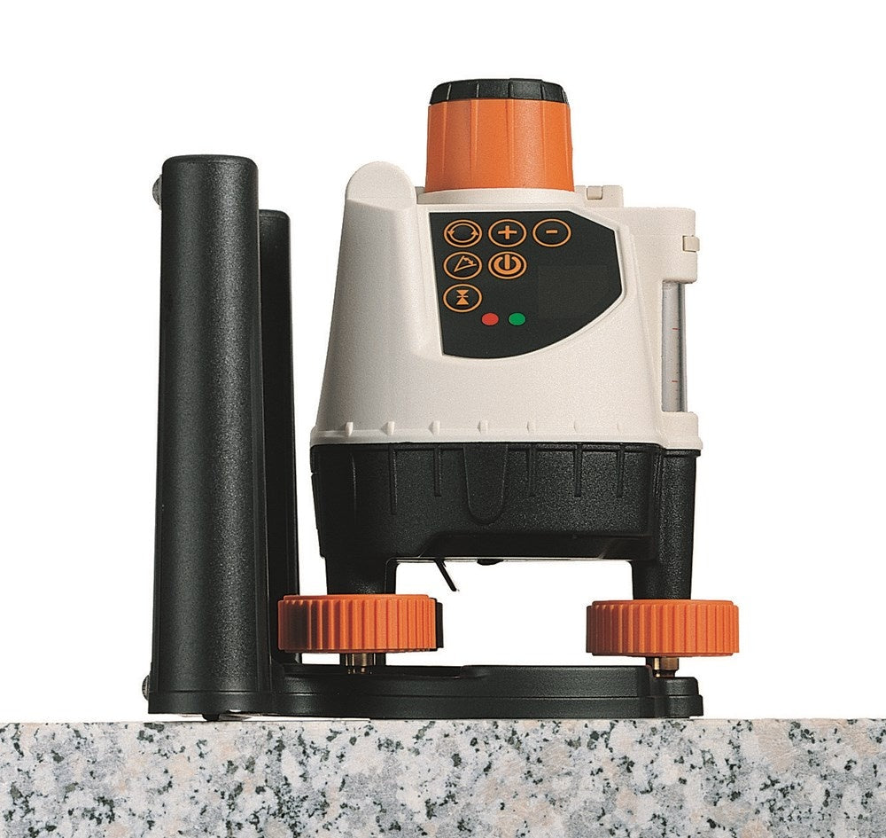 Rotatielaser met laserontvanger in transporttas. Inclusief 4x AA batterijen, universele houder, licht-statief 165cm en flexi-meetlat. Lees meer