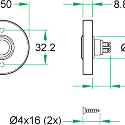 Roestvast Staal AISI 304 (A2), mat zwart rond met onzichtbare bevestiging, voor elektrische deurbel. Lees meer
