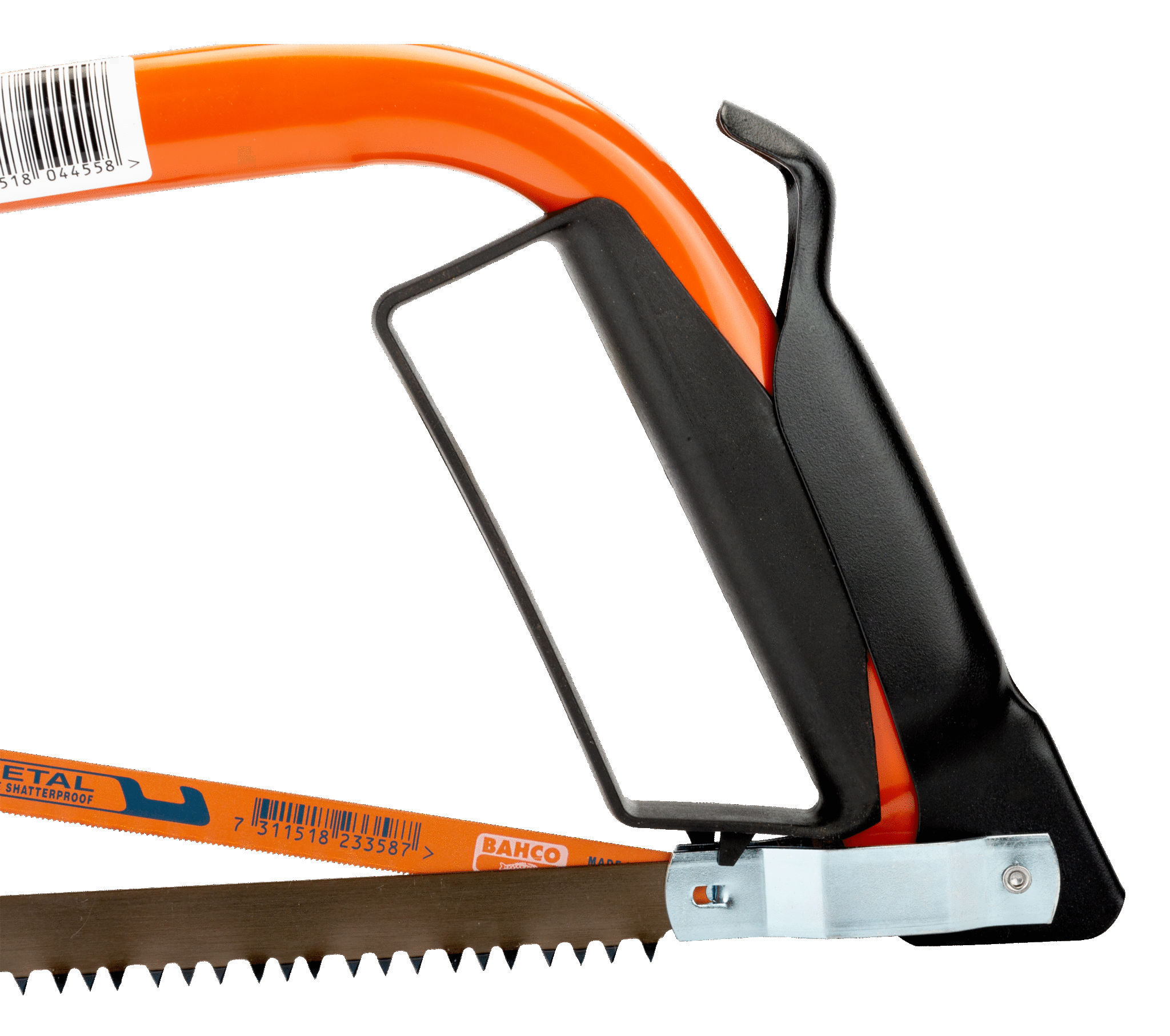 Zaagbeugel past door het handig formaat in een gereedschapskist, ideaal voor loodgieters en elektriciens. Compleet met 12" (300 mm) beugelzaagblad type 51 voor het zagen van hout evenals een 12" (300 mm) SANDFLEX® bimetaal handmetaalzaagblad 3906.