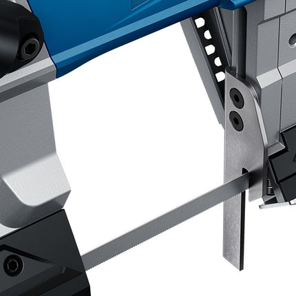 Set bevat: 18V accu bandzaagmachine met borstelloze motor en zaagcapaciteit tot 127x127mm, inclusief bandzaagblad CB 4418 (18 TPI), schroefsleutel en kartonnen doos.