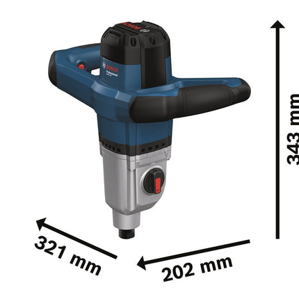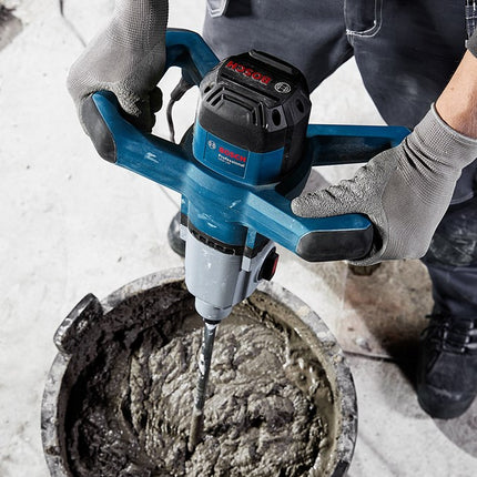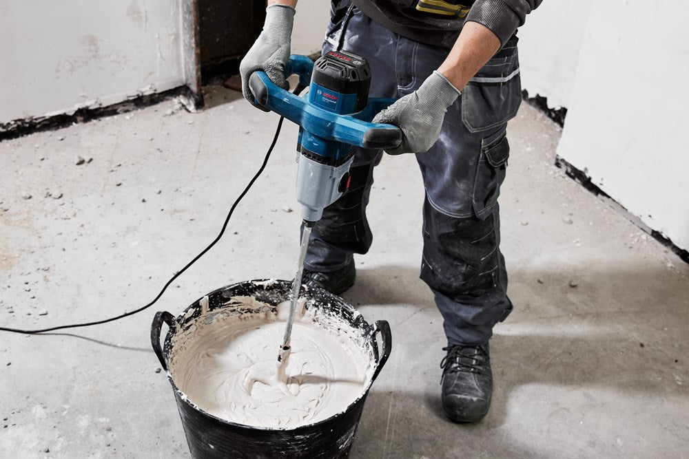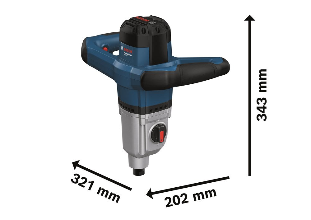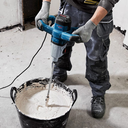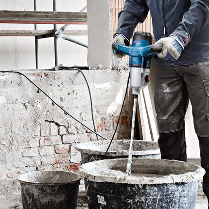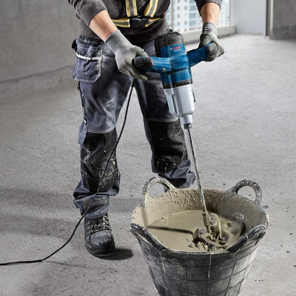 Set bevat: 1400W mengmechanisme met twee snelheidsinstellingen (480/750min⁻¹), elektronische softstart en M14 gereedschapsopname, geleverd in kartonnen doos. Geschikt voor het mengen van diverse bouwmaterialen tot 40kg.