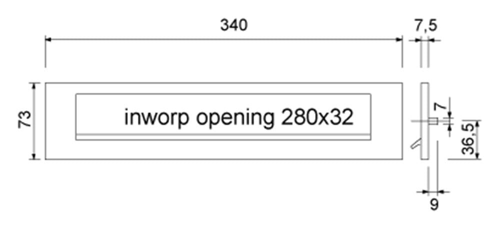 Rechthoekig model. Aluminium, mat zwart. Voorzien van veer. Geschikt voor horizontaal en verticaal gebruik. Afmeting 340x73x7,5 mm. Voldoet aan Post NL norm.