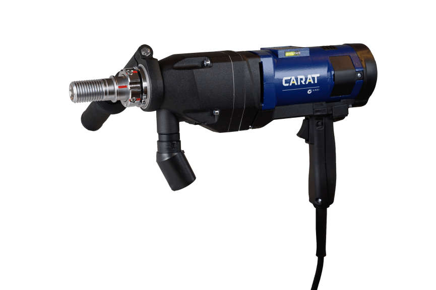 Een krachtige diamantboormachine voor droog boren in harde materialen, met microkloptechnologie en geleverd in een handige transportkoffer.