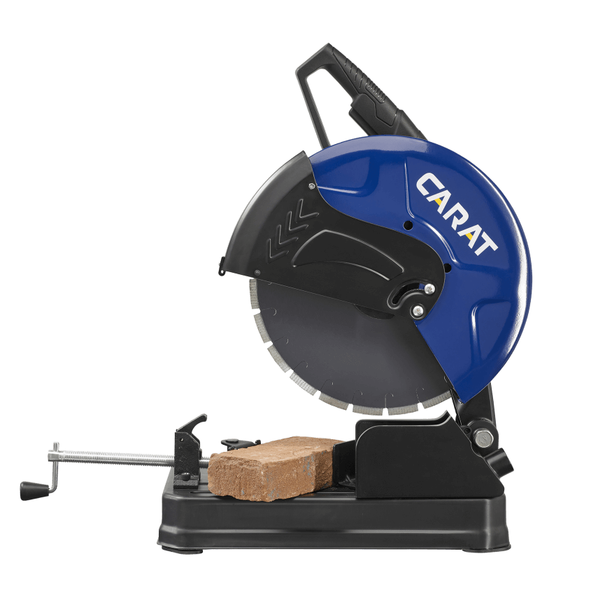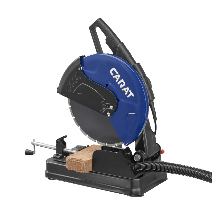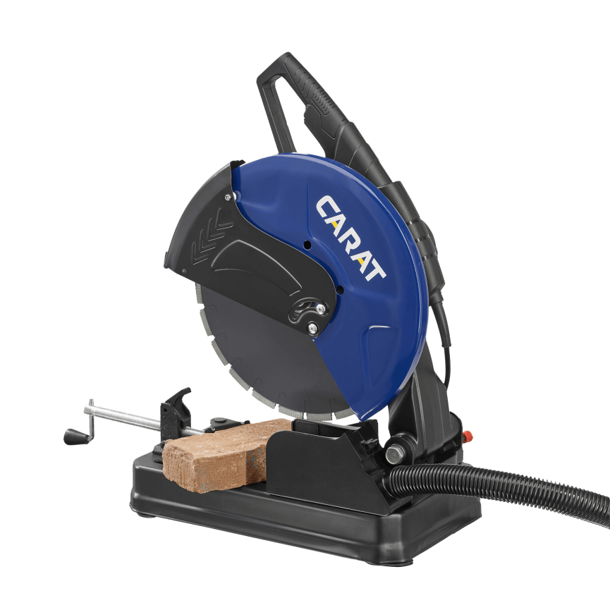 Set bevat: Carat Easycoup Compact 350 afkortzaagmachine, geschikt voor droog zagen van steen, beton en tegels. Compact en lichtgewicht ontwerp met geïntegreerde stofafzuiging.