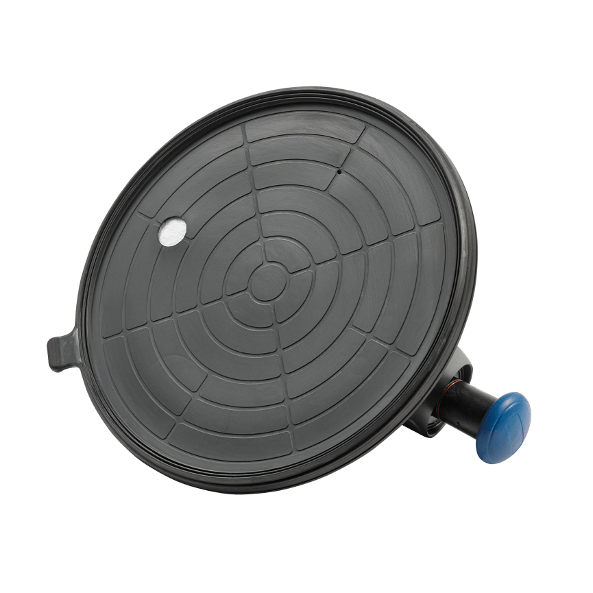 Set bevat: Manuele tegelzuignap met 200mm diameter en stevige koffer, geschikt voor het tillen van tegels, glas, laminaat, melamine en HPL.