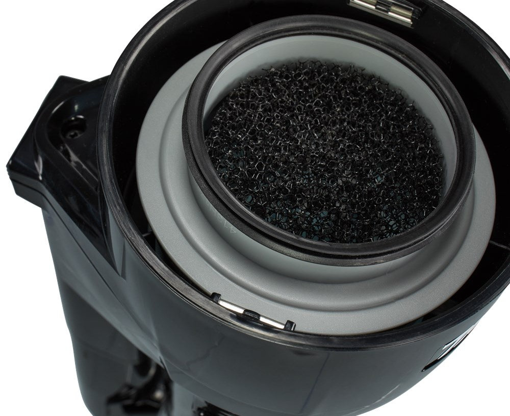 Korte cycloon voorafscheider zwart met klik-vergrendeling, kort model. De cycloon-werking scheidt het grove van het fijne stof. Inclusief filter. Exclusief steelstofzuiger.