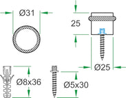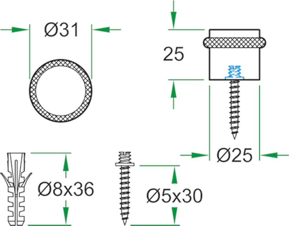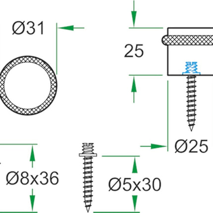 Rvs AISI 304 (A2), mat geborsteld. Voorzien van zwart rubber buffer. Geschikt voor vloermontage.