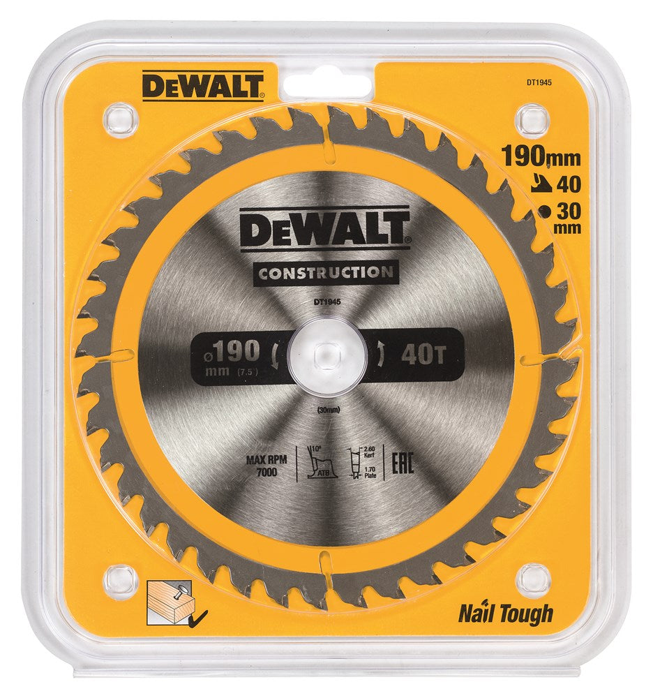 DeWALT CONSTRUCTION CIRKELZAAGBLAD 190X30MM 40TDT1945-QZ