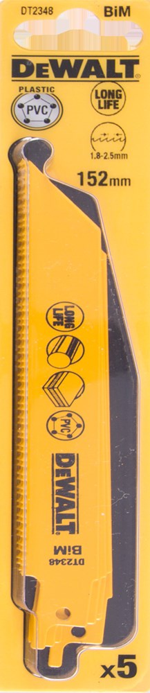 DeWALT RECIPROZAAGBLAD BIM 152X1,8-2,5MM SNELLE ZAAGSNEDE IN ALLE MATERIALEN DT2348-QZ