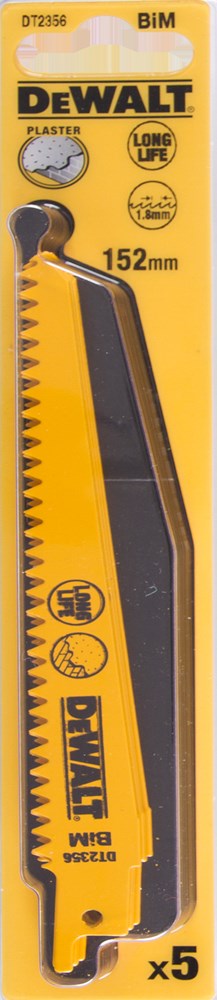 DeWALT RECIPROZAAGBLAD BIM 152X4,2MM SPLINTERVRIJ IN GIPSPLAAT EN KUNSTSOF DT2356-QZ