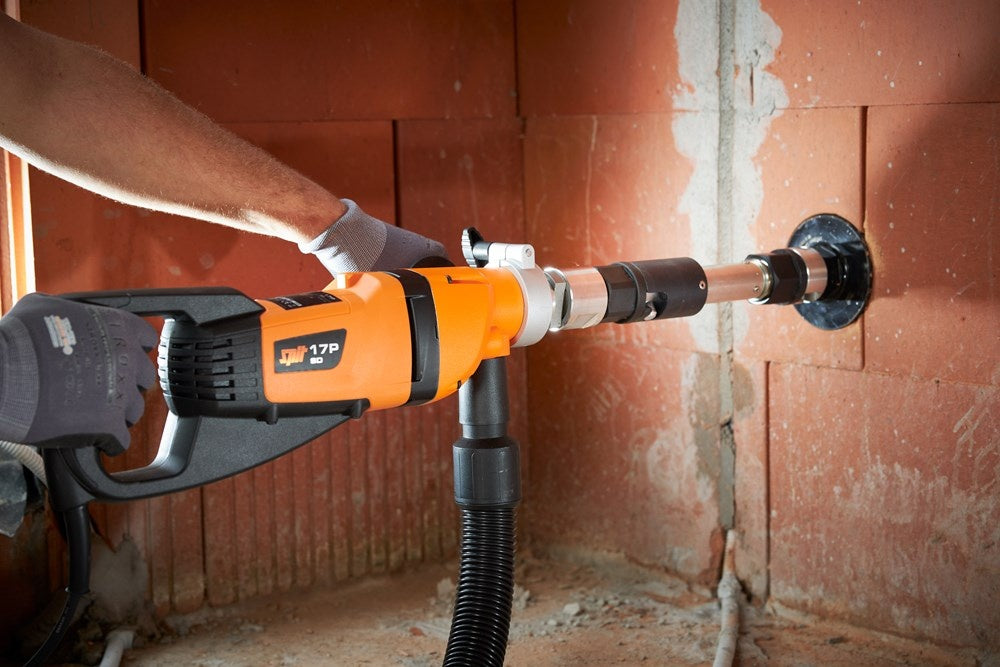 Droog boren in steen en holle beton voor loodgieters, elektriciens en algemene bouw. Voor installatie van leidingen, airconditioning, ventilatie, afzuigkap, kachelaansluiting, etc. Lees meer