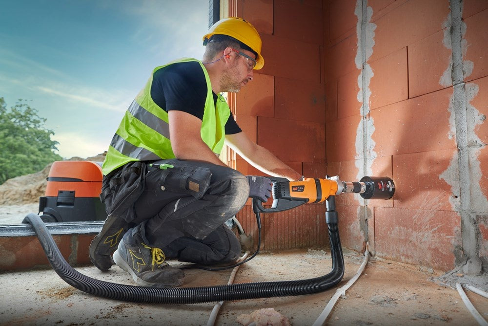 Droog boren in steen en holle beton voor loodgieters, elektriciens en algemene bouw. Voor installatie van leidingen, airconditioning, ventilatie, afzuigkap, kachelaansluiting, etc. Lees meer