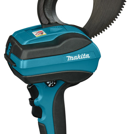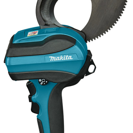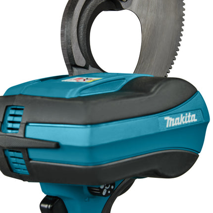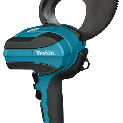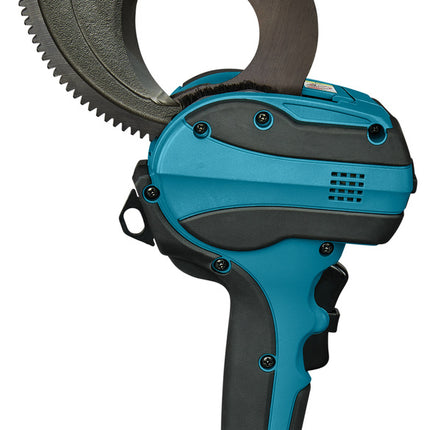 Krachtige Makita kabelschaar DTC100ZK, aangedreven door 18V LXT accu voor mobiel kabelsnijden tot 105 mm diameter, geschikt voor elektrotechnische en industriële toepassingen. Geleverd zonder accu's en lader in koffer.