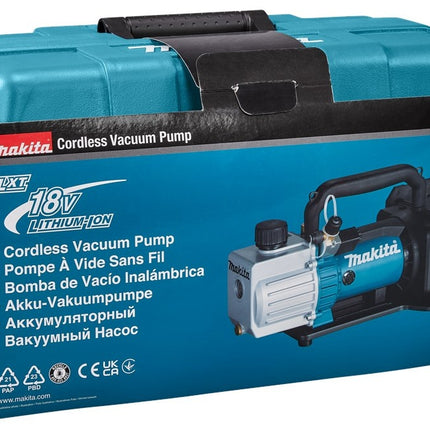 18V Vacuümpomp met adapter AS0Y06110K en olie DVP181 zonder accu's en lader, geleverd in kunststof koffer LXT