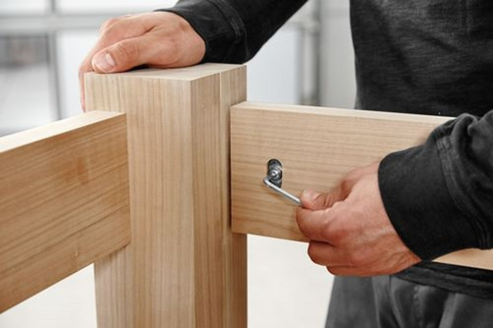 Toepassingen- Verbinderassortiment voor de verwerking met de freesmachine DF 700 voor de productie van demonteerbare meubelconstructies zoals bedden, tafels, keukenwerkbladen alsmede voor de productie van vlakverbindingen in de meubelindustrie die losgemaakt kunnen worden, zoals keukenwerkbladen, banken, etc.