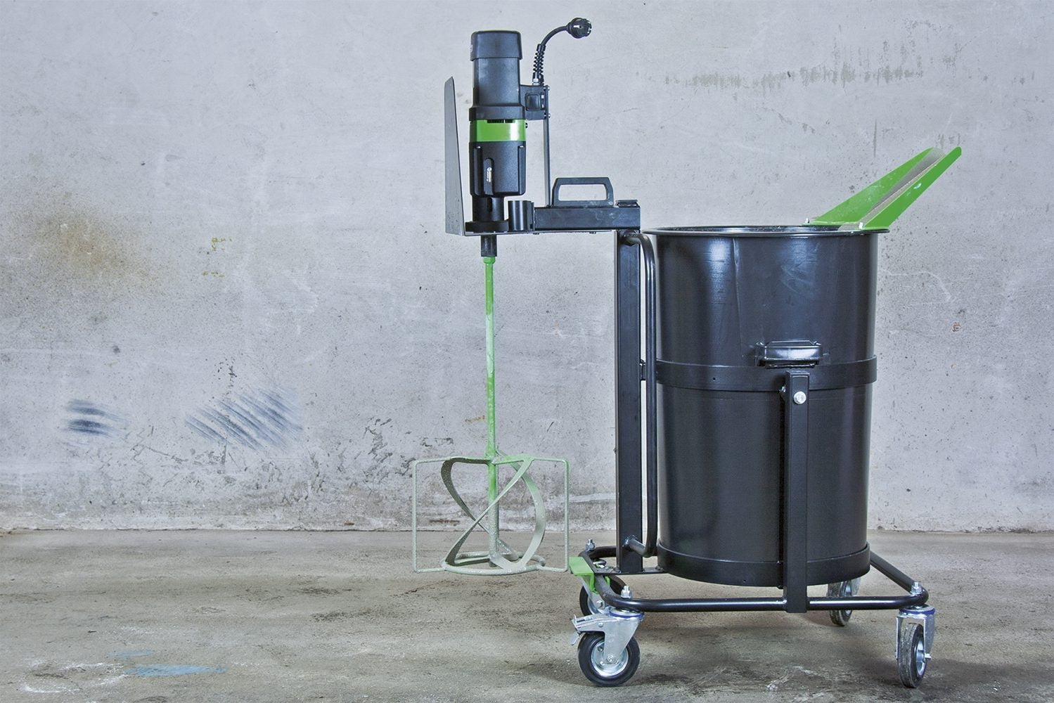 De Floormix 2300 van Eibenstock is de krachtigste kuipmixer in zijn klasse. Aangedreven door een elektromotor van maar liefst 2300 watt is dit mengstation in staat om zeer grote hoeveelheden egalisatiemiddelen in een oogwenk te mengen.
