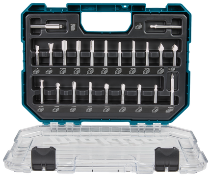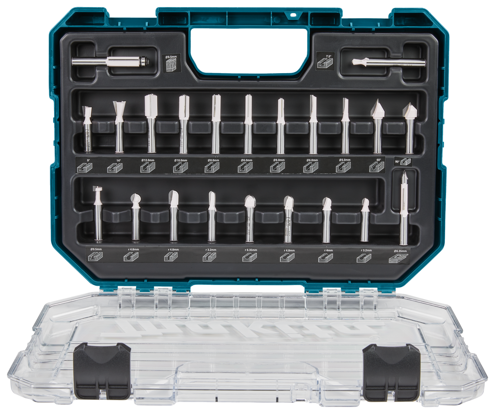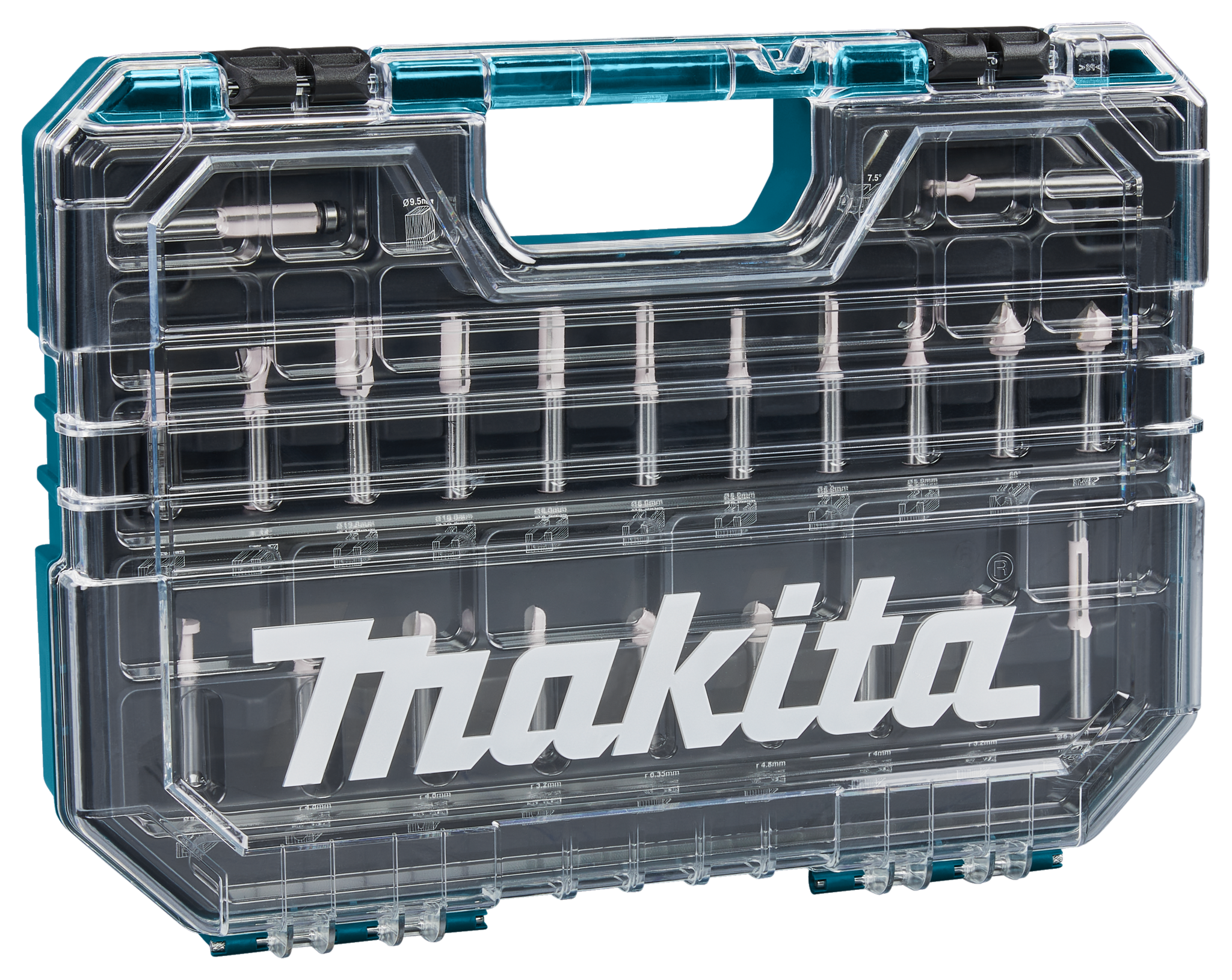 Uitgebreide 22-delige Makita frezenset, in overzichtelijke kunststof koffer