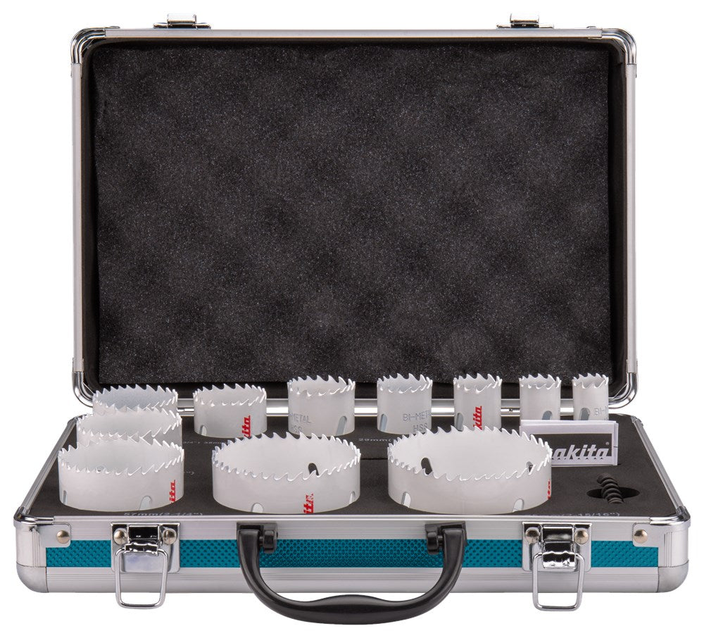 Producten zijn ook los verkrijgbaar. Professionele bi-metalen gatzaagset loodgieter. Inclusief twee gatzaaghouders, gatzagen in de maten 19, 22, 25, 29, 35, 38, 44, 51, 57, 68, 75mm, en een uitwerpveer. Passend op Makita Model: 6300-4, DA4031, DDA460ZK...