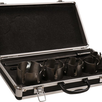 9-delig. Bestaande uit gatzagen 22, 35, 51, 57, 64 en 76 mm, 2 gatzaaghouders en 1 verloopnippel. Inclusief aluminium opbergkoffer. Technische specificaties diameter 22, 35, 51, 57, 64 en 76 mm materiaal HSS toepassing (materiaal) metaal, kunststof, h...