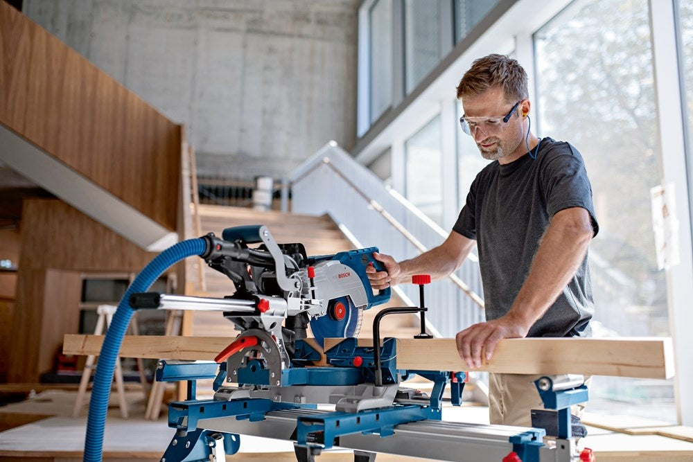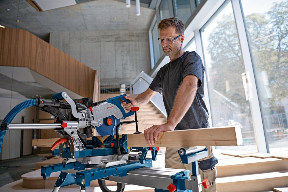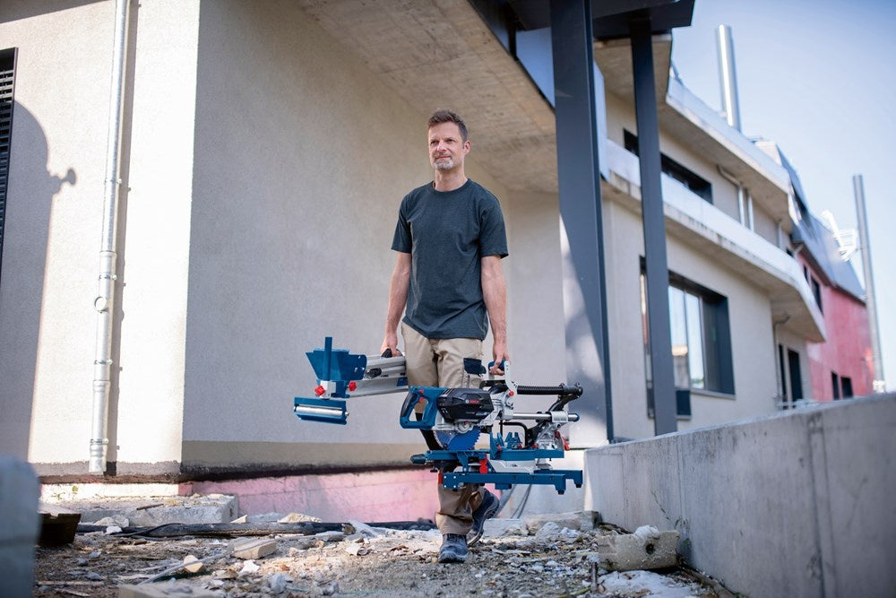 Snoerloze flexibiliteit met prestaties als van een machine met snoer – de complete verstekzaagmachine. Accu en lader niet meegeleverd, 1x Cirkelzaagblad, schroefklem, inbussleutel, SDS zaagbladvergrendeling, lengtestop, inlegplaat, GCY 42.
