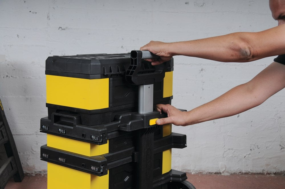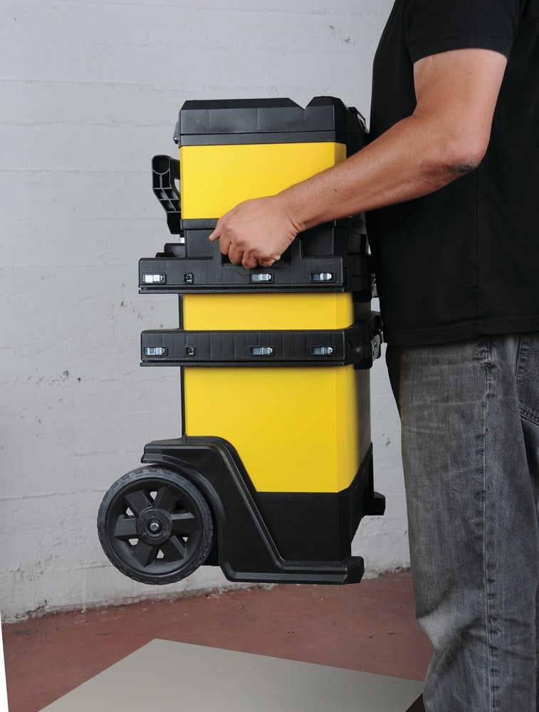 Gereedschapswagen MP. Standaard geleverd met module voor diepe mobiele bakken, lade, diepe gereedschapskist en internal tote tray. Lees meer