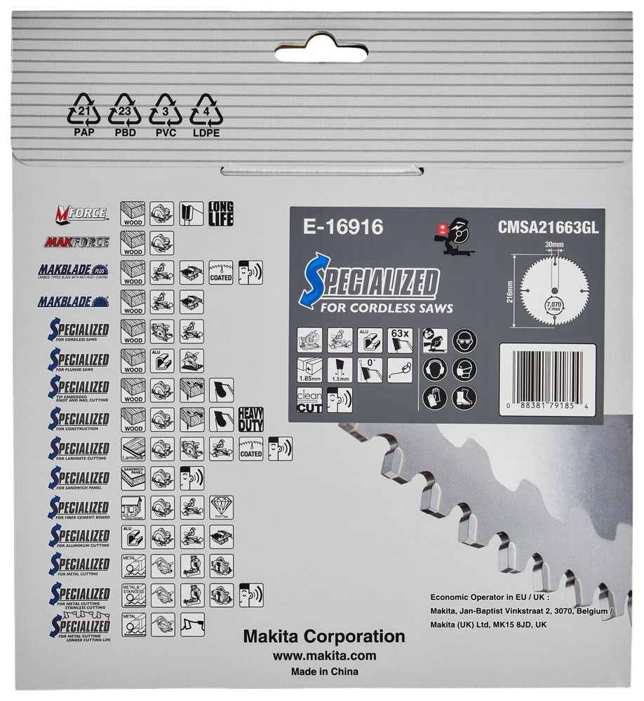 Makita HM Zaagb 216x30mm 63T 0g alu - E-16916