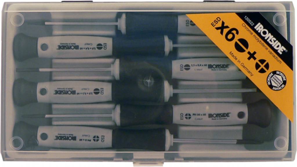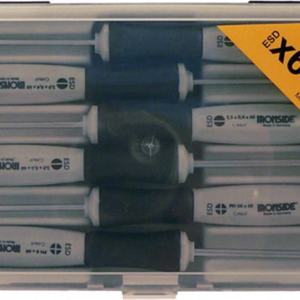Antistatisch, van chroom-molybdeen-vanadiumstaal met zwarte punt, draaiende top en twee-componenten hecht. 6-delige set.