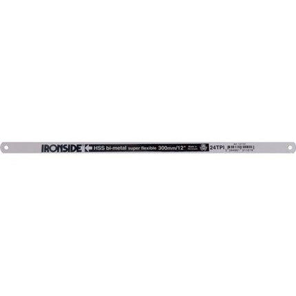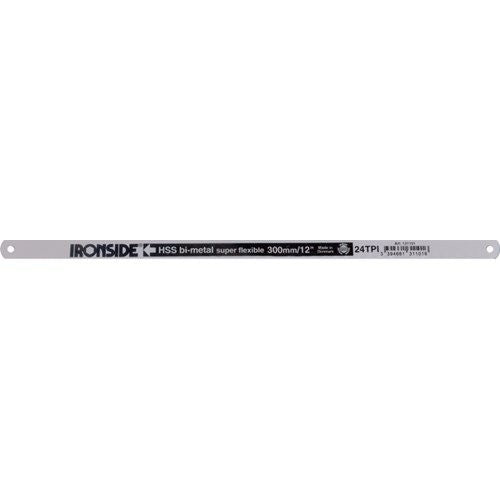 HSS bi-metaal. Afmeting 300x13x0,65 mm. Rug van taai gereedschapsstaal en een tandenrij van hooggelegeerd sneldraaistaal. Geschikt voor het zagen van allerlei staalsoorten. Gewicht 17 g. Verpakt per 100 stuks.