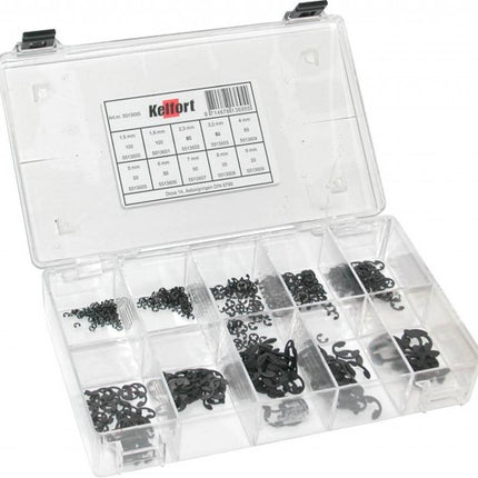 Transparante kunststof doos, 10 vaks. Afmeting 218x142x42 mm. Inhoud: Asborgringen Verenstaal. Volgens DIN 6799. maatvoering mm. stuks 1,5100 1,9100 2,380 3,280 4,065 5,050 6,050 7,040 8,030 9,020