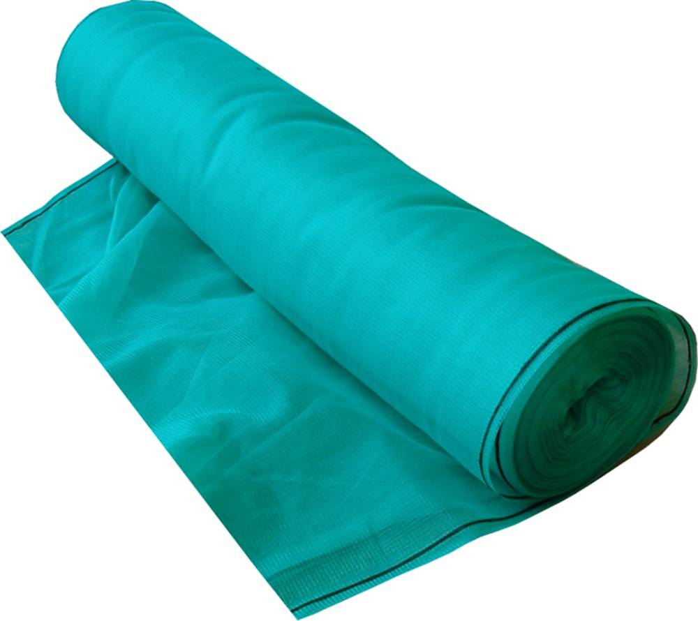 Polyethyleen. Kleur groen. Aan beide zijden en in het midden voorzien van knoopsgatband voor eenvoudige montage aan de steiger. Ter bescherming van vallend puin. Windreductie van 50% en gewicht 75 g/m² met een ± 5% afwijking.