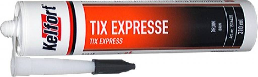 Type Tix Expresse. E n-component pasteuze polyurethaanlijm met zeer snelle uitharding en een voegvullende werking. Droogt blank op. Voor watervaste en temperatuurbestendige (-30 C tot + 100 C) houtverbindingen. De lijm zakt niet weg op verticale vlak...