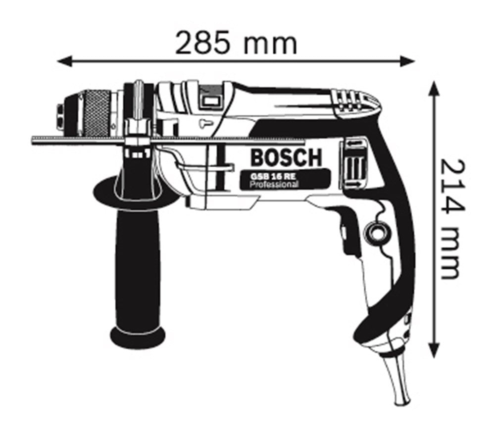 De GSB16RE van Bosch is een 230V boormachine van 750W voor het snelste resultaat. Zijn compacte constructie en softgrip helpen het optimale bedienen van de machine voor de gebruiker.