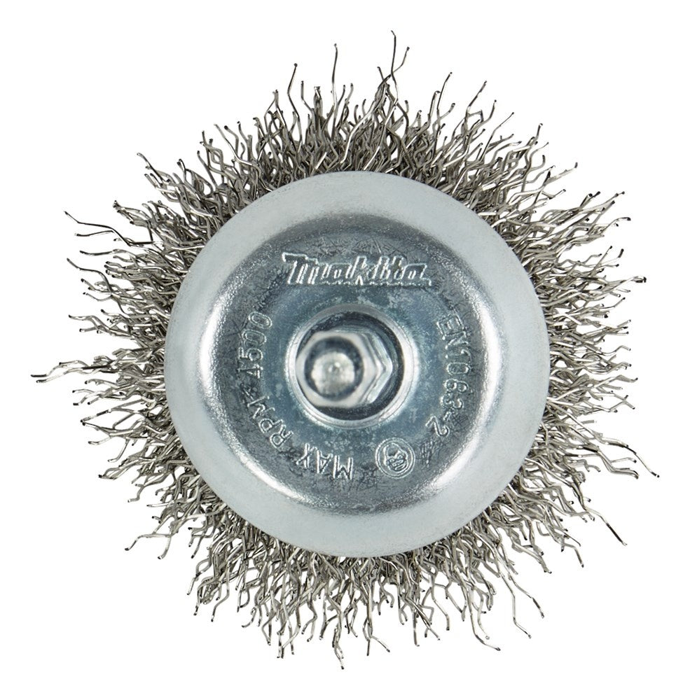 Makita komborstel 38mm met 1/4" vorm E aansluiting. Deze komborstel heeft geplooid RVS draad en is uitstekend geschikt voor het reinigen en verwijderen van verf, roest, aanslag en schilfers, of voor het ontbramen van RVS en staal. Ook geschikt voor het...