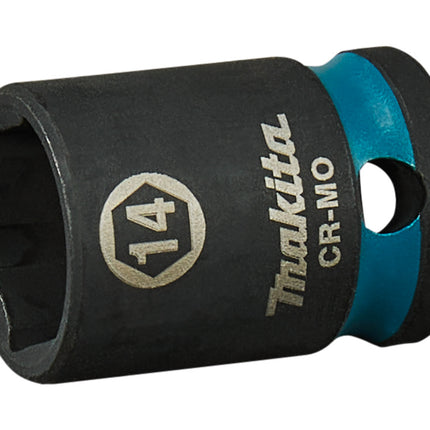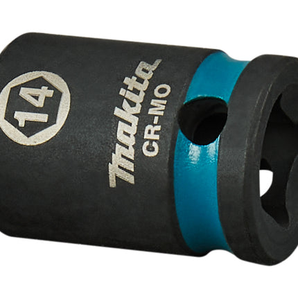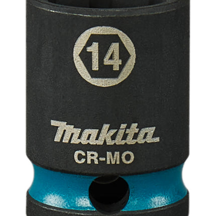 De Makita 14mm krachtdop uit de Impact Black-serie biedt robuuste prestaties en duurzaamheid.