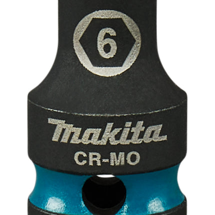 De Makita 6mm krachtdop uit de Impact Black-serie biedt uitstekende prestaties en duurzaamheid. Vervaardigd uit Chroom-Molybdeen, staat deze dop garant voor een lange levensduur en een nauwkeurige passing.