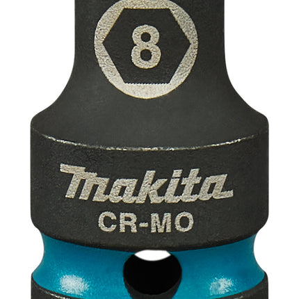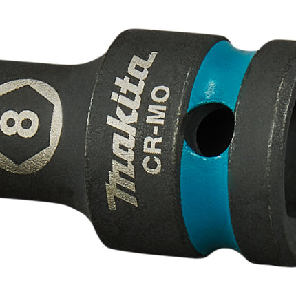 Makita 8mm krachtdop uit de Impact Black serie, met 1/2" VK aansluiting in lengte 38mm.