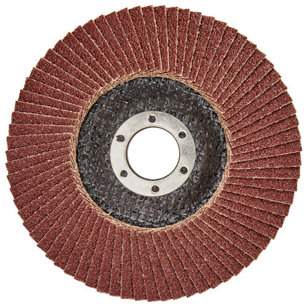 Lamellenschuurschijven zijn voorzien van lamellen bestaande uit een rug van vezelstof en korrels. Deze zijn geplaatst op een schijf met een rug van glasvezels. Doordat de schijf opgebouwd is uit lamellen is deze veerkrachtiger dan een schuurschijf en minder agressief voor het te bewerken materiaal. Bijzonder geschikt voor het schuren van lasnaden. Soorten korrel: Aluminiumoxide [A]: Zeer geschikt voor staal. Geschikt voor aluminium, non-ferro metalen en kunststoffen. Zirkoniumoxide [Z]: Zeer geschikt voor RVS. Geschikt voor staal, aluminium en non-ferro metalen. Keramisch aluminiumoxide [Ce]: Zeer geschikt voor RVS. Geschikt voor staal, aluminium en non-ferro metalen. Siliciumcarbide [S]: Zeer geschikt voor mortel en steen. Vom van de schijf: Vlakke schijven gebruik je voor het vlakschuren van oppervlakken. Plaatst deze onder een hoek van 0-15° op het materiaal voor een optimaal gebruik. Schuine schijven gebruik je voor het schuren van lasnaden, slijpen van vellingkanten en ontbramen. Plaats deze onder een hoek van 10-25° op het materiaal voor een optimaal gebruik. Korrels: 36/40: Lasnaadbewerking en vellingkanten. 60: Lasnaadbewerking, vellingkanten, ontbramen en vlakschuren. 80: Ontbramen en vlakschuren. 120: Vlakschuren. Makita aluminiumoxide lamellenschuurschijf schuin met glasvezel versterkte rug. Diameter 125mm met korrel 40. Zeer geschikt voor: metaal. Geschikt voor: kunststof, non-ferro metalen en hout.