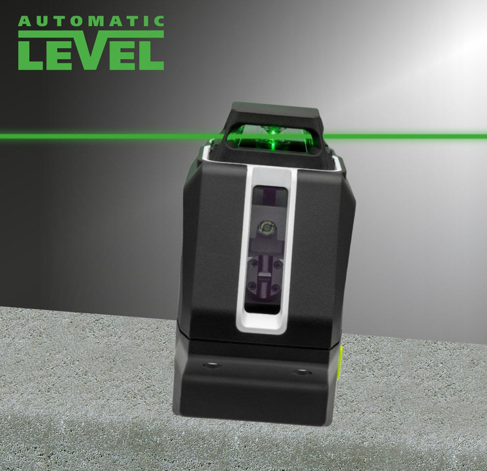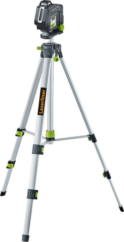 Set bevat: Handige kruislijnlaser met groene lasertechnologie en handmatige hellingsfunctie, inclusief compact statief van 150cm, multifunctionele houder, magnetisch richtplaatje en laserlichtbril voor optimale zichtbaarheid.