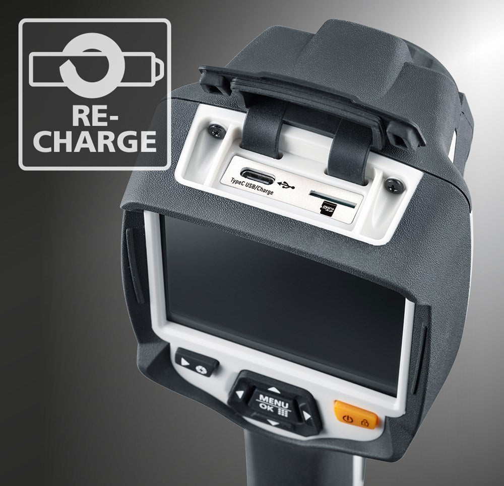 Set bevat: ThermoCamera HighSense met hoge thermische gevoeligheid, twee Li-ion accu's, laadstation met net-/laadapparaat, USB-kabel, 8 GB micro-SD-kaart en draagkoffer. Ideaal voor detectie van warmtebruggen, analyse van verwarming...