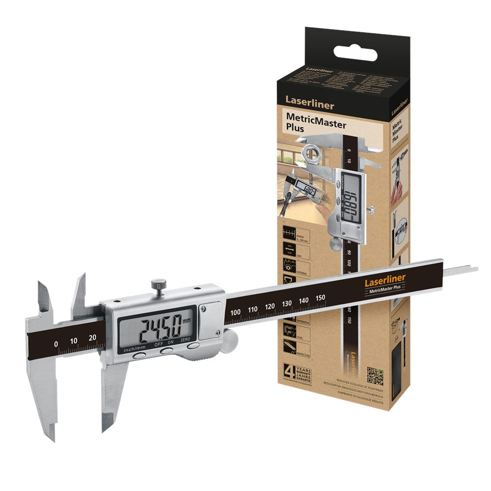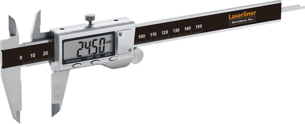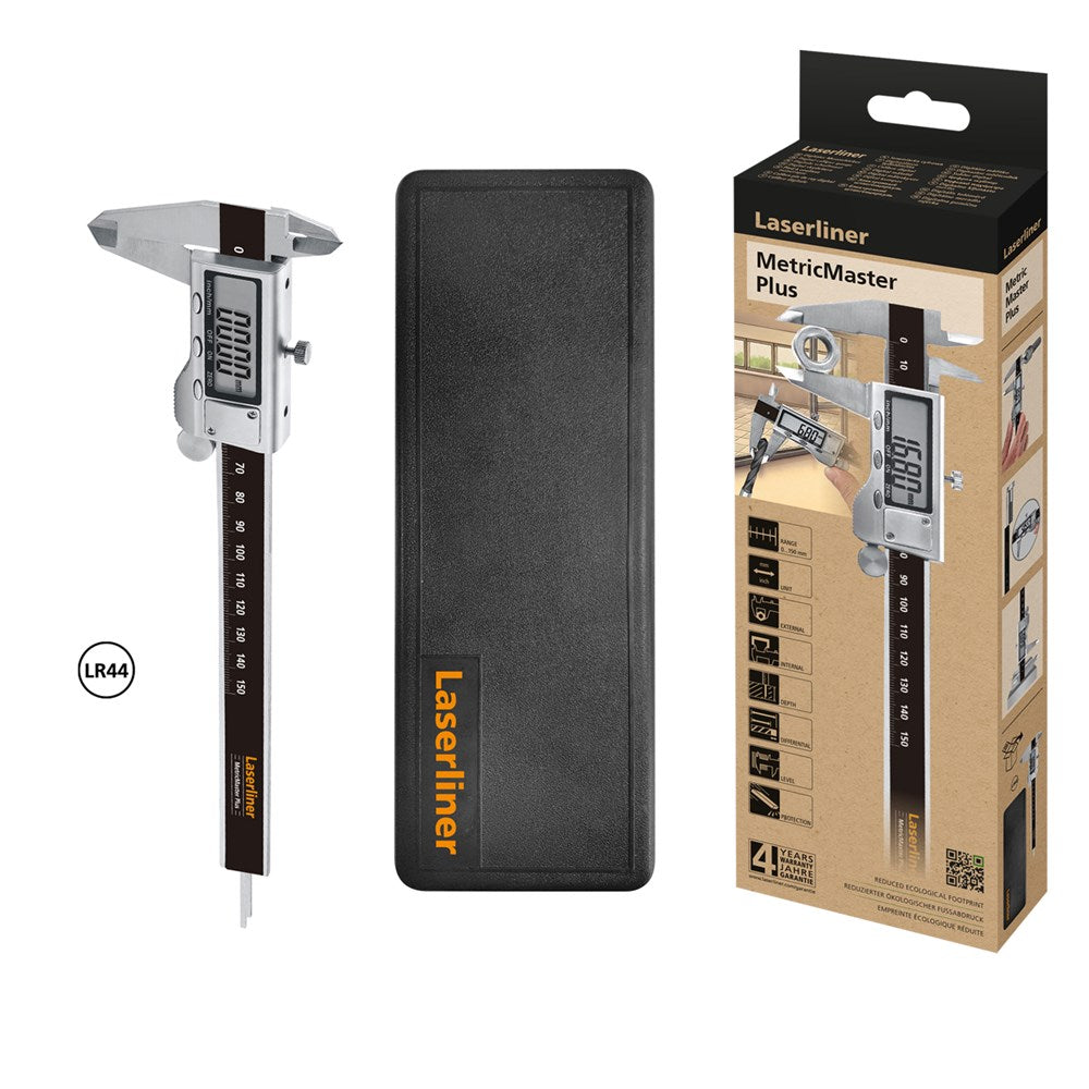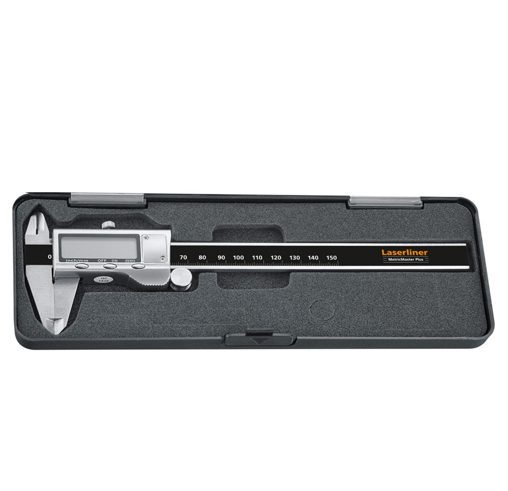 Set bevat: Digitale schuifmaat voor nauwkeurige metingen van buiten-, binnen-, diepte-, verschil- en hoogtemetingen, inclusief transportbox en batterij.