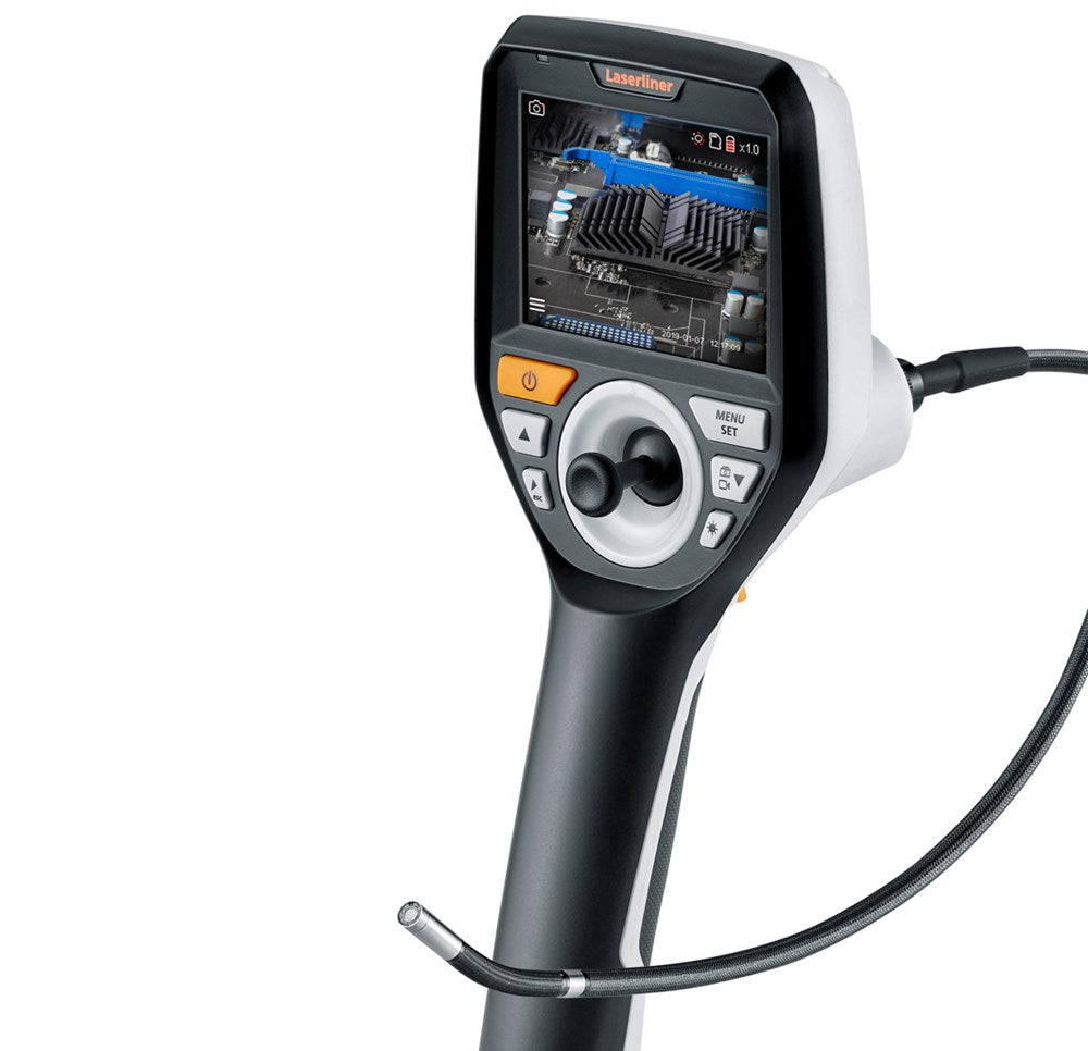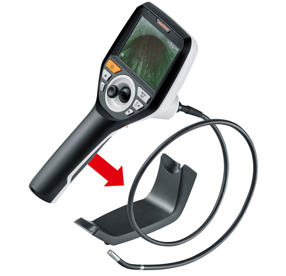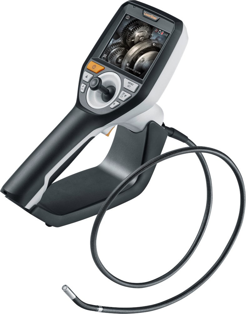 Set bevat: Professioneel video-inspectiesysteem met flexibele camerakop voor inspectie van moeilijk bereikbare plaatsen, inclusief accessoires zoals Li-ion accupack, magnetische houder en 8GB micro SD-kaart.