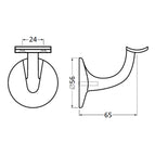 Zwarte leuninghouder 65 mm met rond zadel - M8